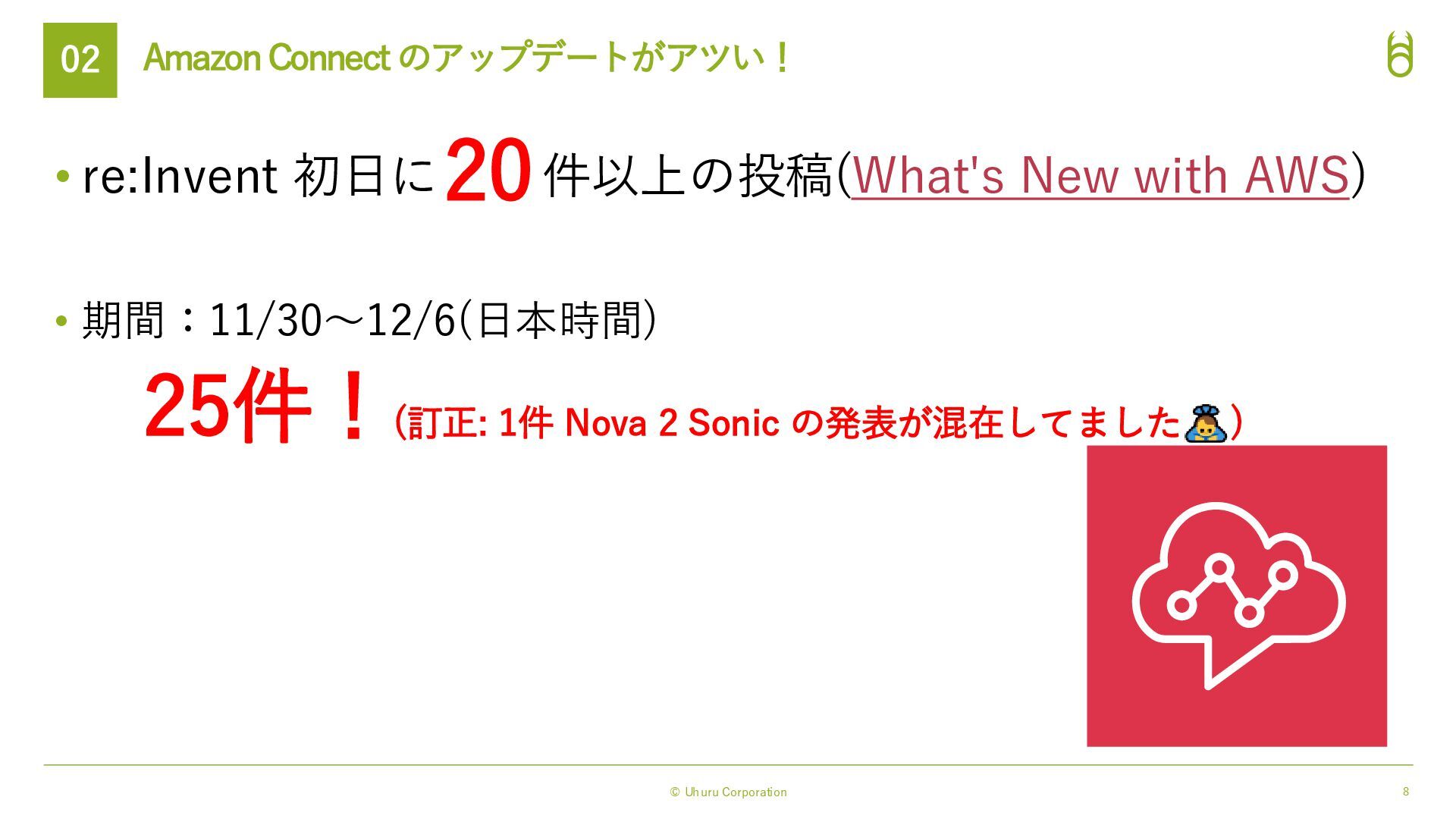 4. © Uhuru Corporation 8 Amazon Connect のアップデートがアツい! 02 • re:Invent