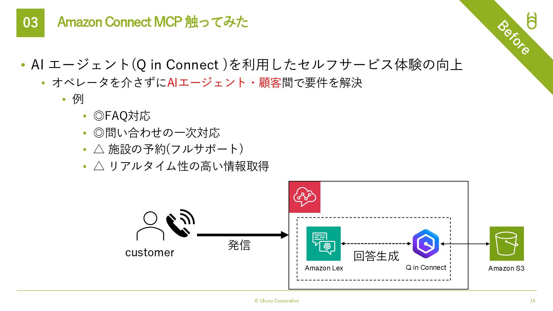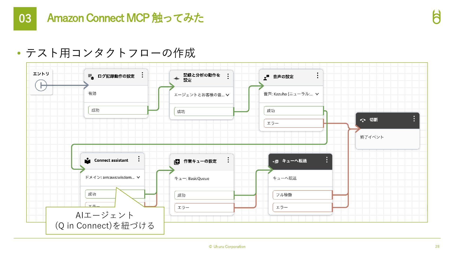 16. © Uhuru Corporation 28 Amazon Connect MCP 触ってみた 03 •