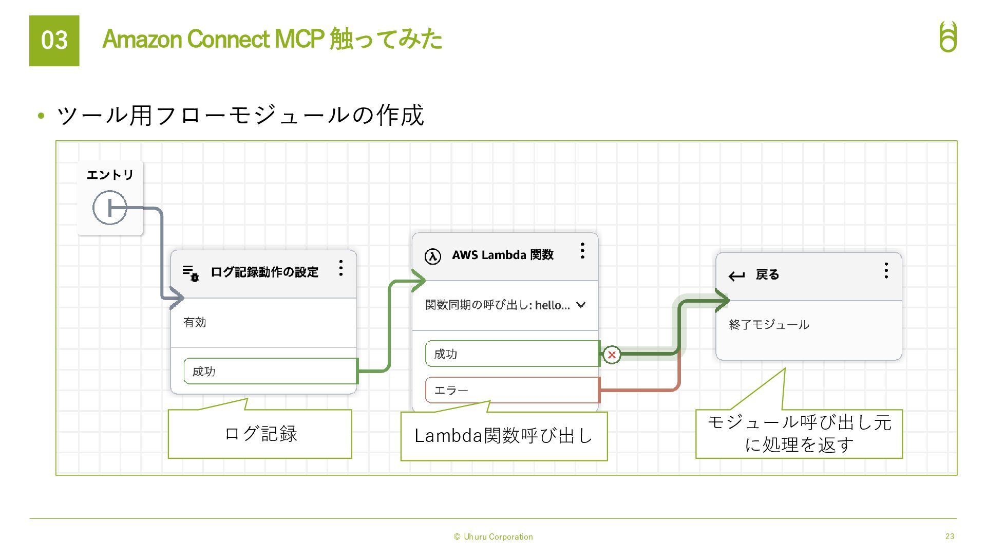 13. © Uhuru Corporation 23 Amazon Connect MCP 触ってみた 03 •
