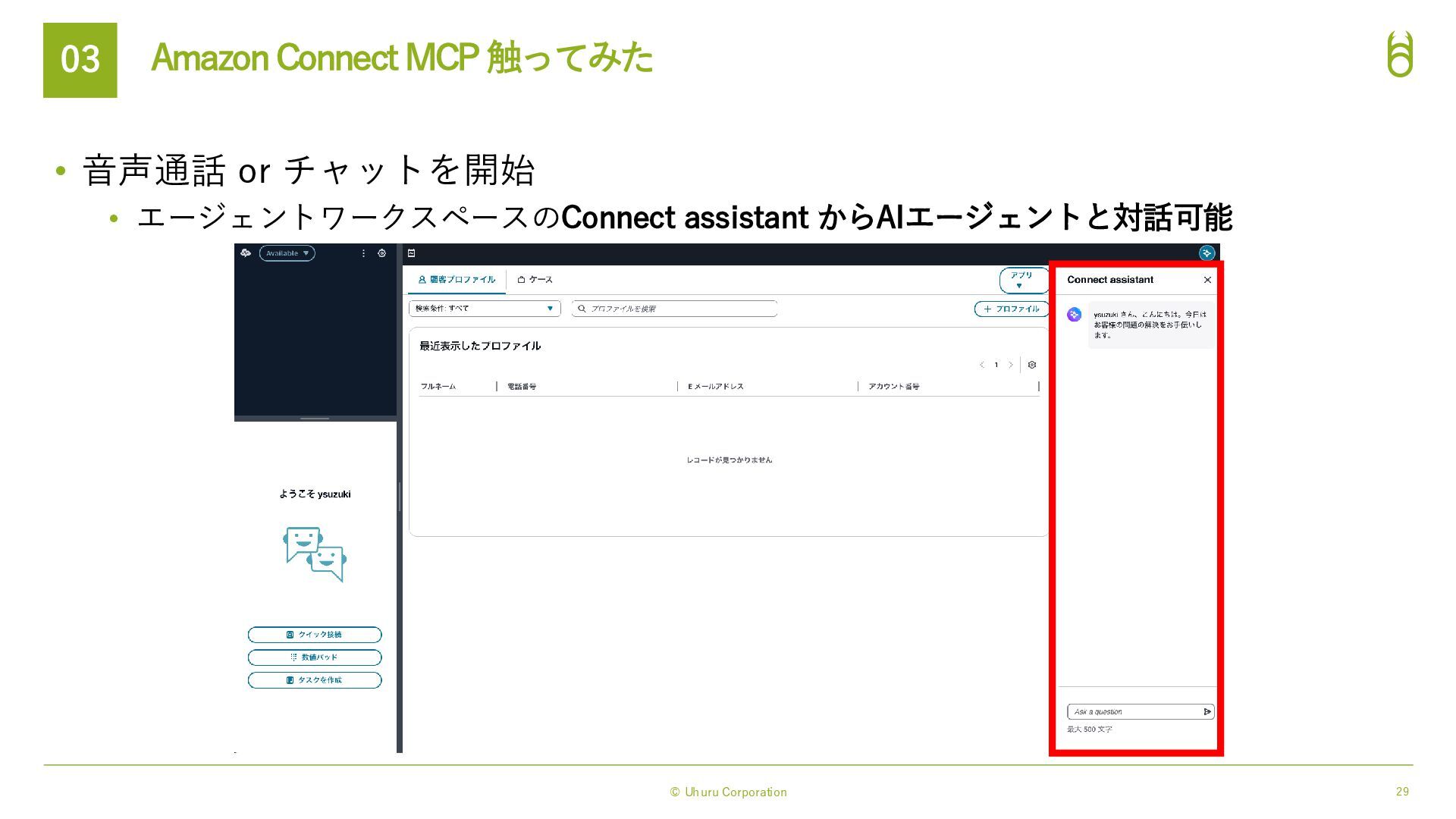 17. © Uhuru Corporation 29 Amazon Connect MCP 触ってみた 03 •