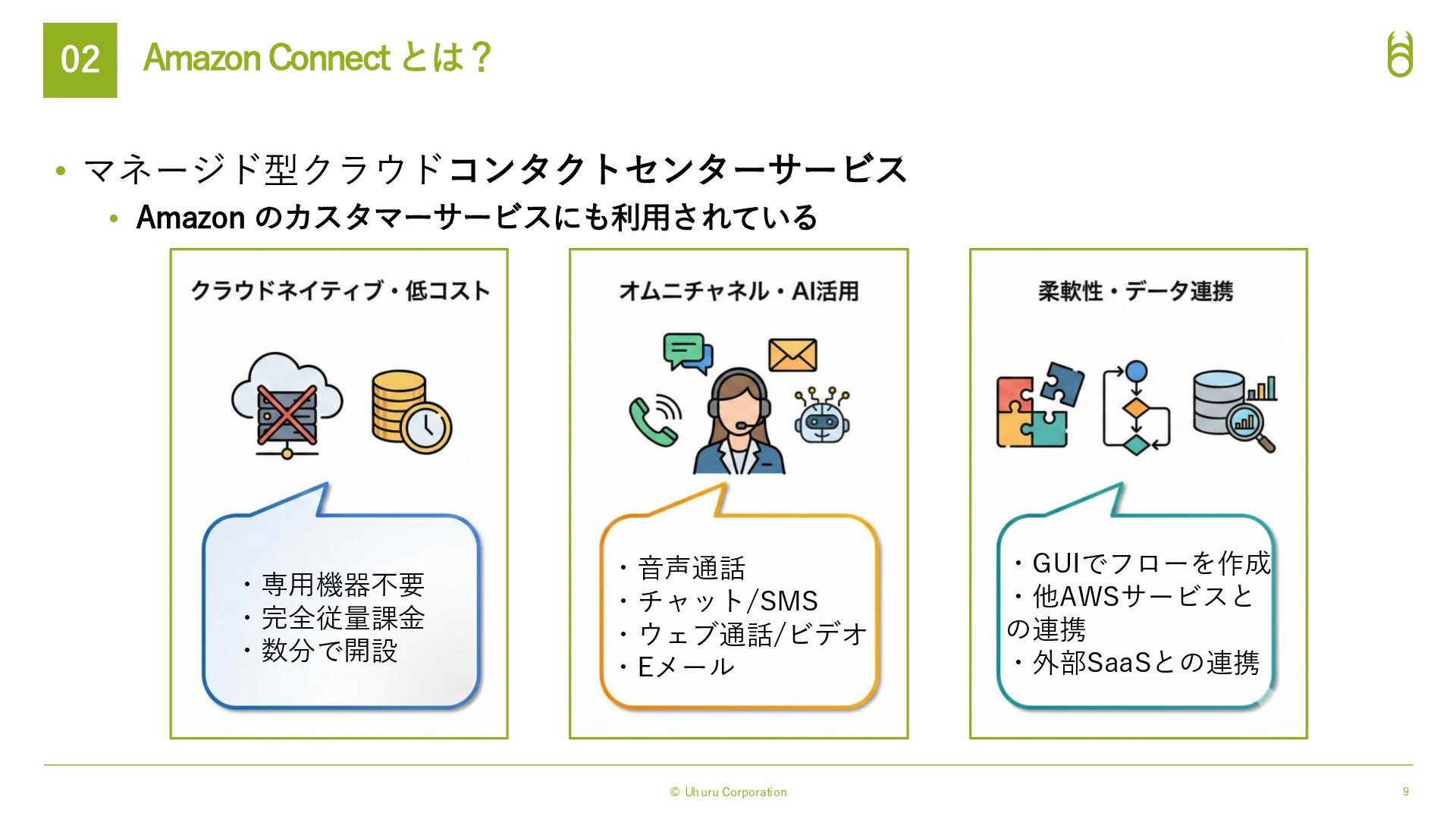 4. © Uhuru Corporation 9 Amazon Connect とは? 02 • マネージド型クラウドコンタクトセンターサービス