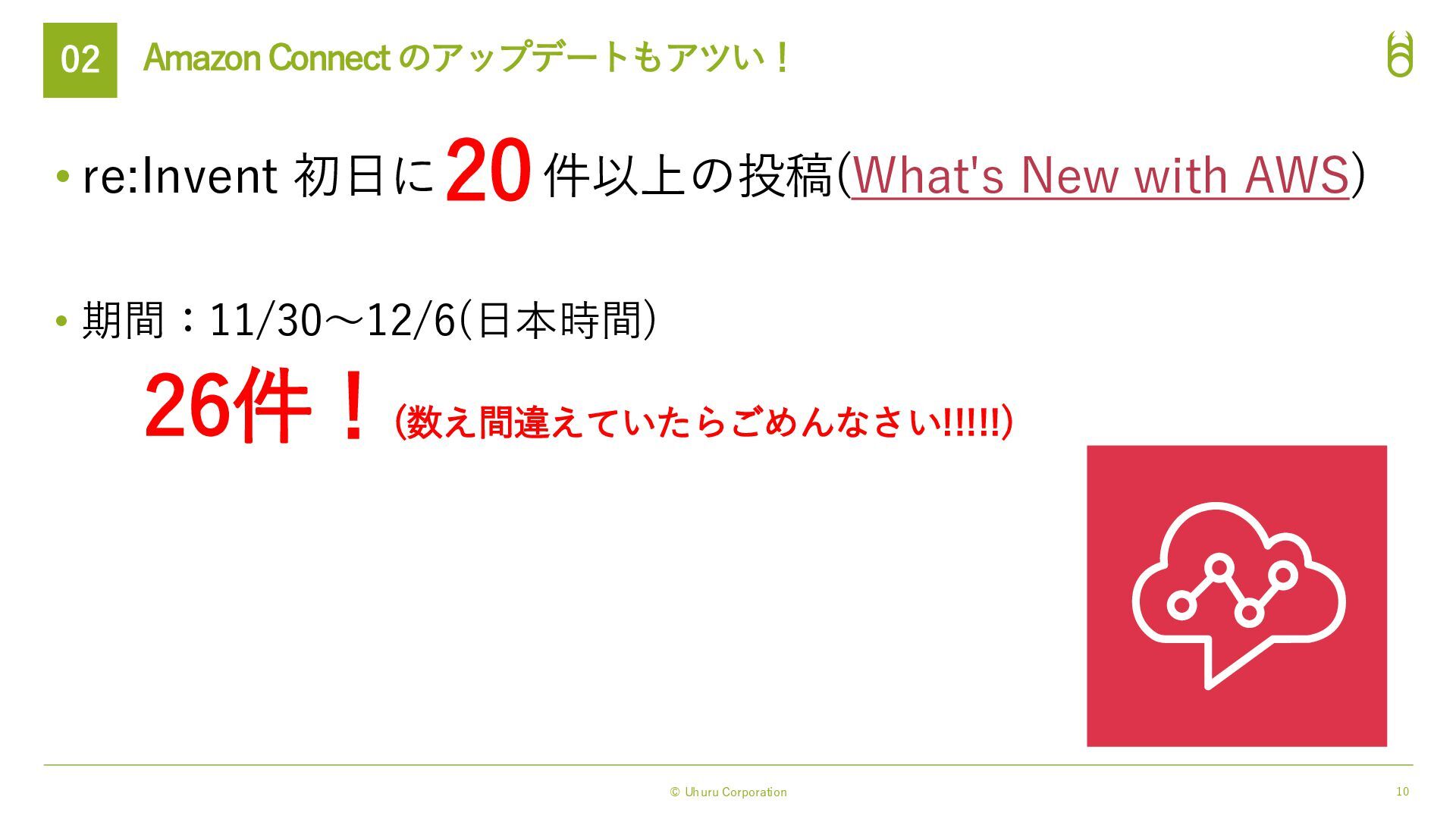 5. © Uhuru Corporation 10 Amazon Connect のアップデートもアツい! 02 • re:Invent
