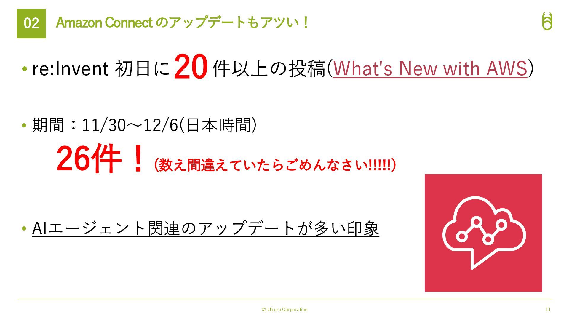 6. © Uhuru Corporation 11 Amazon Connect のアップデートもアツい! 02 • re:Invent