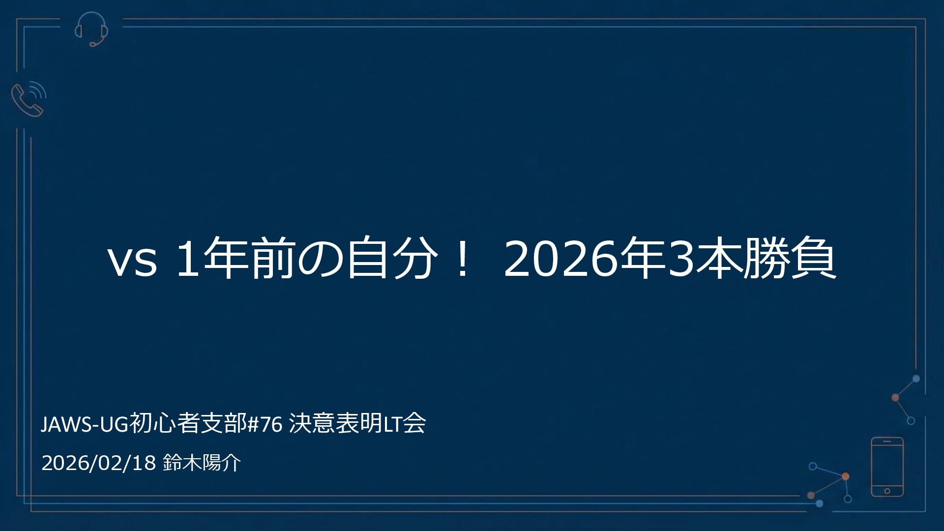 vs 1年前の自分! 2026年3本勝負 JAWS-UG初心者支部#76 決意表明LT会 2026/02/18 鈴木陽介
