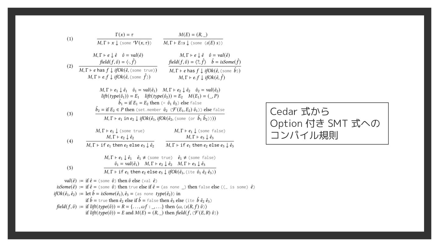 Cedar 式から Option 付き SMT 式への コンパイル規則
