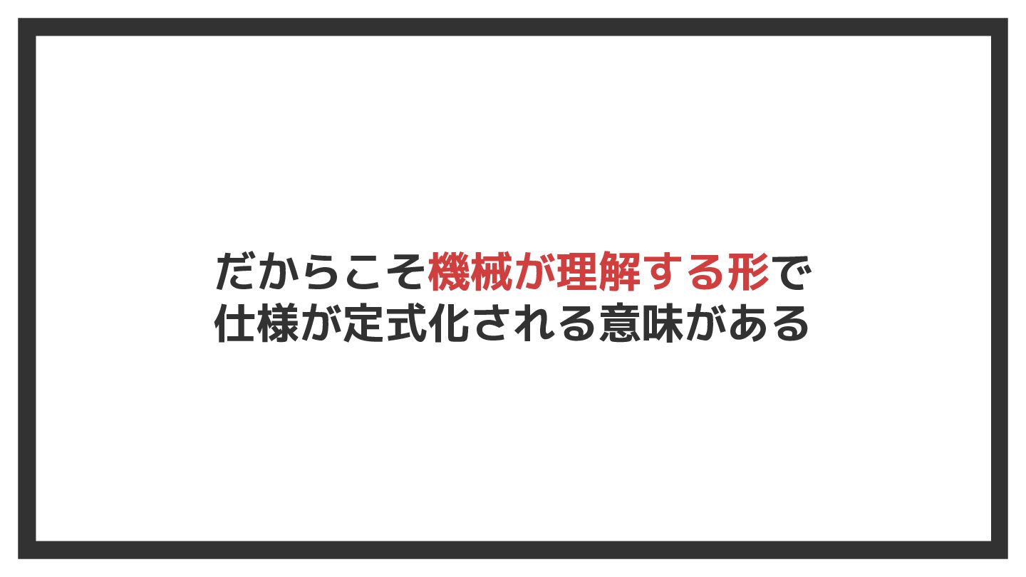 だからこそ機械が理解する形で 仕様が定式化される意味がある