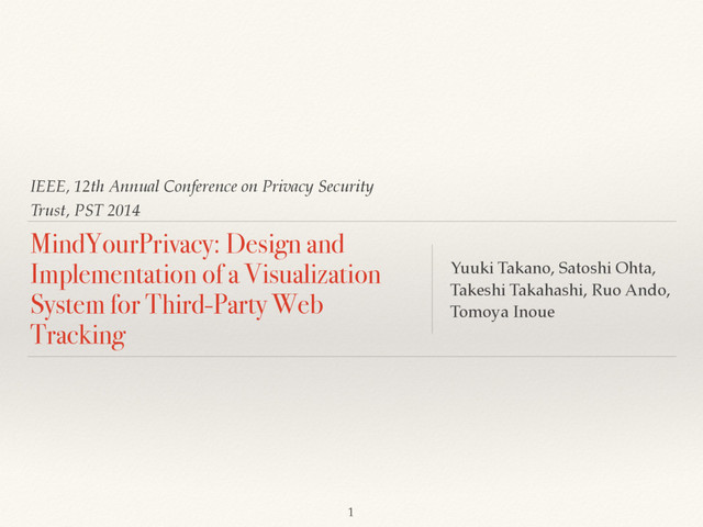 This paper presents the design and implementation of a system called MindYourPrivacy that visualizes third-party web tracking and clarifies the entities threatening users' privacy.