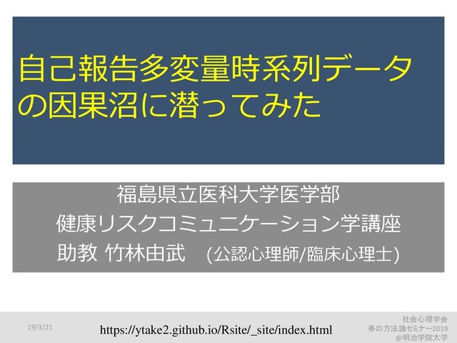 B. (2010). Emotional inertia and psychological maladjustment. Psychological science, 21(7), 984-991. Koval, P., Sütterlin, S., & Kuppens, P. (2016). Emotional inertia is associated with lower well- being when controlling for differences in emotional context. Frontiers in psychology, 6, 2016. Suls, J., Green, P., & Hillis, S. (1998). Emotional reactivity to everyday problems, affective inertia, and neuroticism. Personality and Social Psychology Bulletin, 24(2), 127-136. 健康な地域住民 (25-48才)48名にDRM. 神経症傾向の高い人は、ネガティブ気分の自己相関高く、 神経症傾向の低い人は、ネガティブ気分の自己相関低い 大学生80名にESM. 自尊心の低い人は、抑うつがある人は、 ネガティブ気分でもポジティブ気分でも自己相関高い 大学生約100名が気分誘導映像視聴後に気分を反復評定 (ポジティブ気分の自己相関よりも)ネガティブ気分の自己相関の 高さが抑うつ症状と関連(人生の満足度よりも)