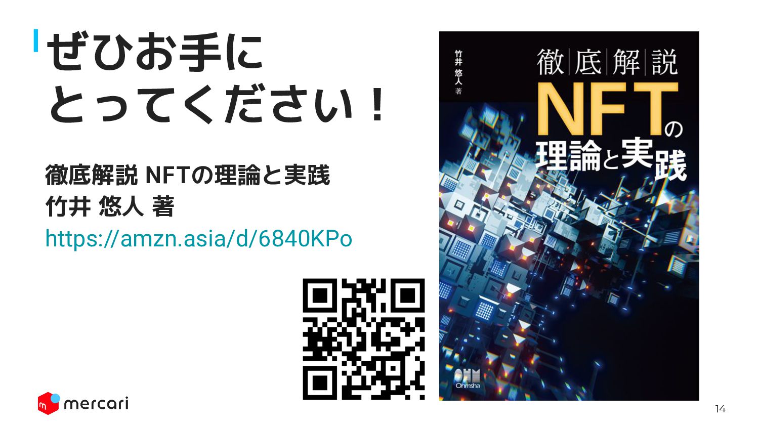 14 徹底解説 NFTの理論と実践 竹井 悠人 著 https://amzn.asia/d/6840KPo ぜひお手に とってください!