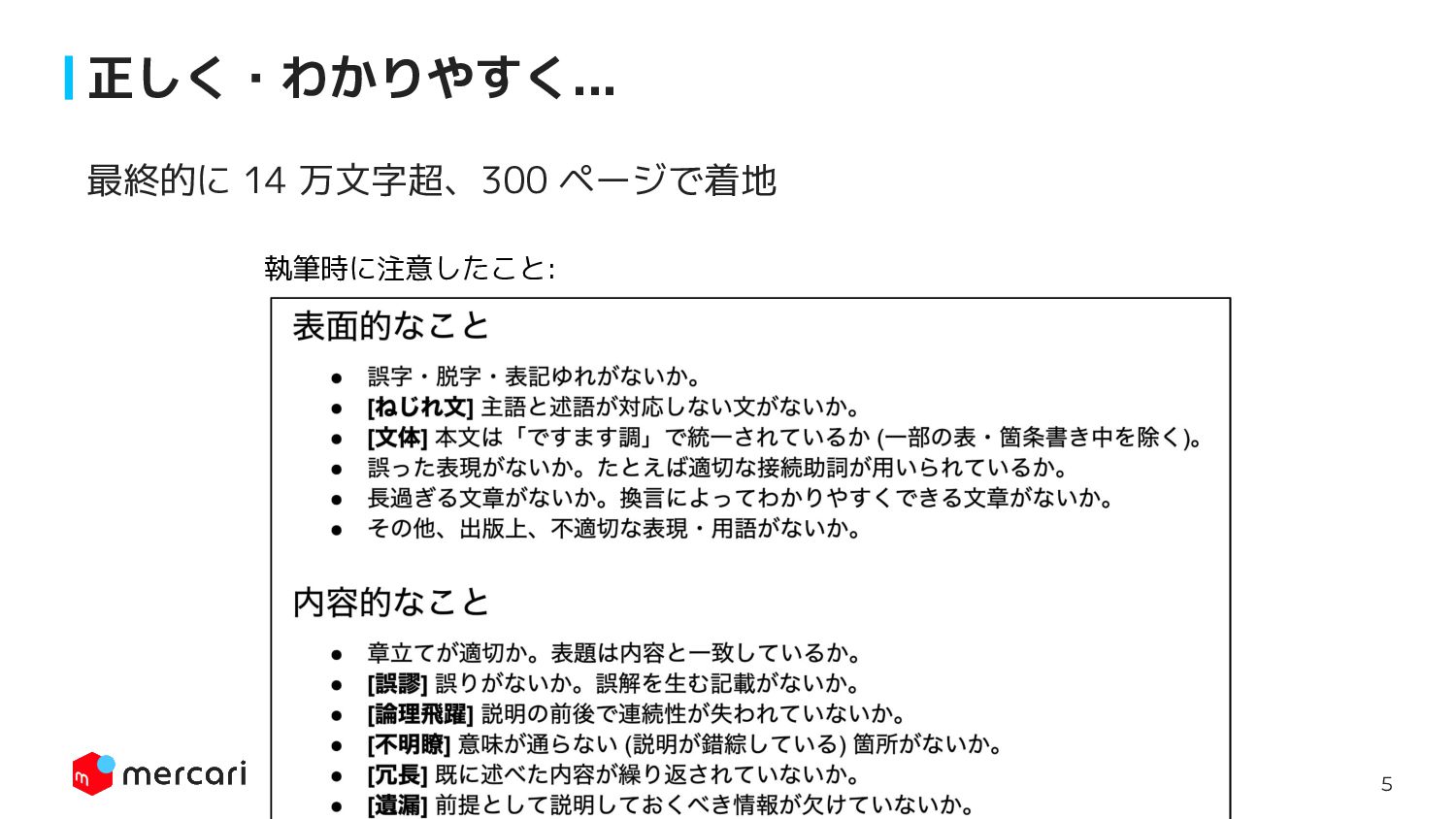 5 最終的に 14 万文字超、300 ページで着地 正しく・わかりやすく... 執筆時に注意したこと: