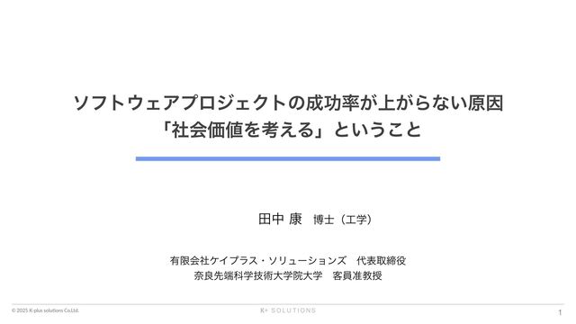 © 2025 K-plus solu ti ons Co.Ltd. 1 ιϑτΣΞϓϩδΣΫτͷޭ্͕͕Βͳ͍ݪҼ ʮࣾձՁΛߟ͑Δʯͱ͍͏͜ͱ