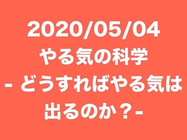 2020/05/04 やる気の科学 - どうすればやる気は出るのか?-