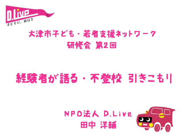 大津市子ども・若者支援ネットワーク 研修会 第2回 NPO法人 D.Live 田中 洋輔 経験者が語る・不登校 引きこもり