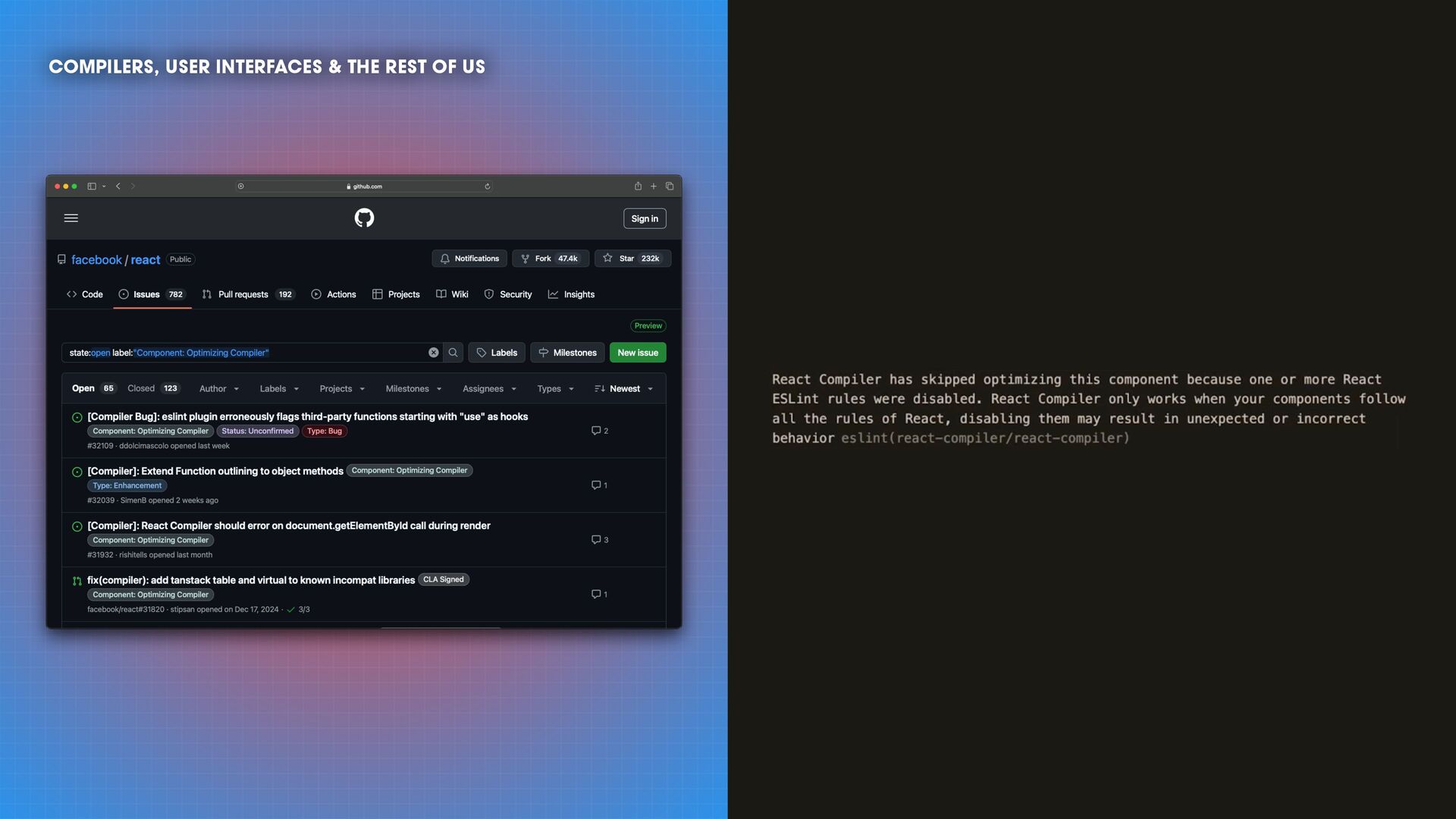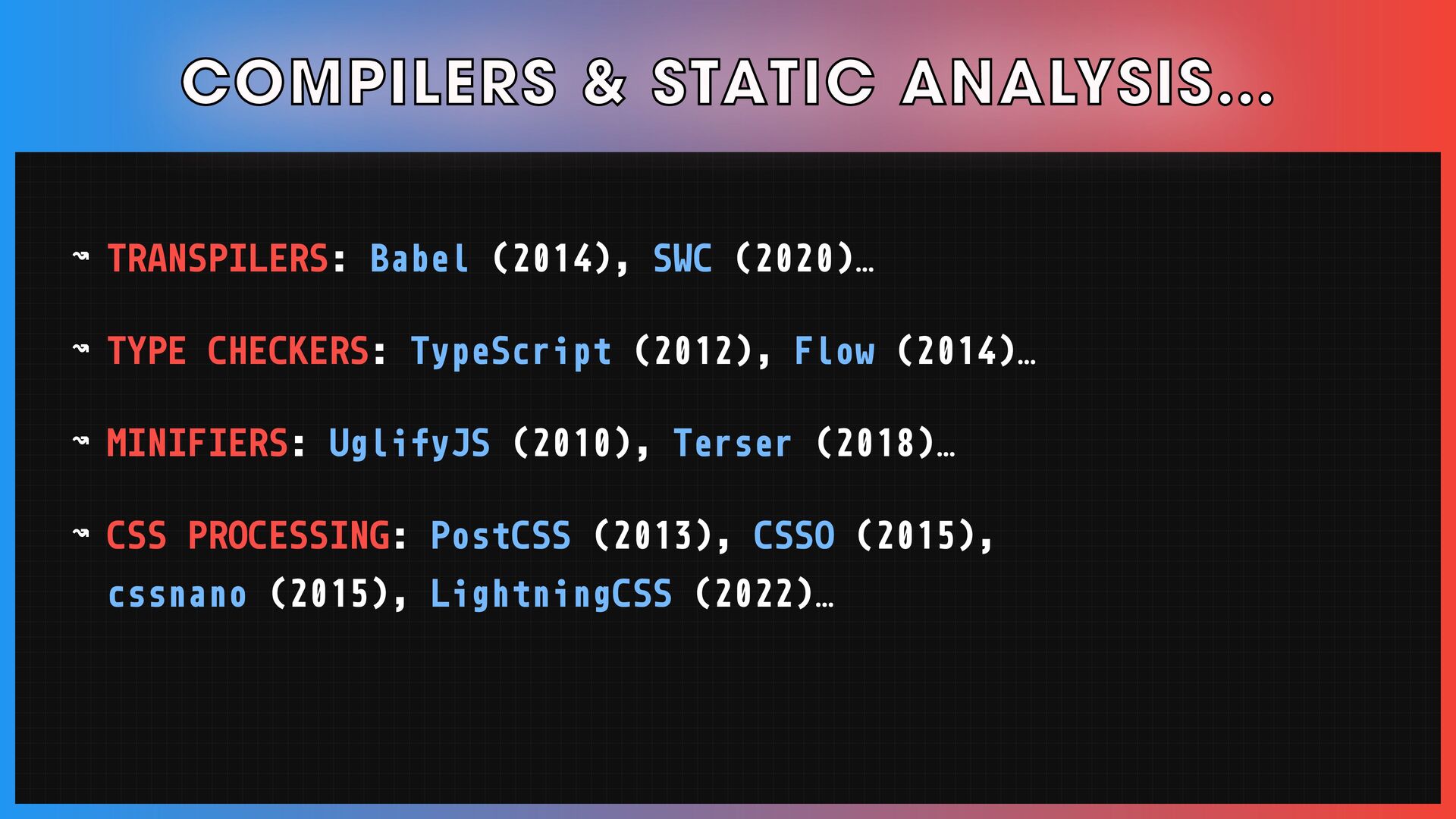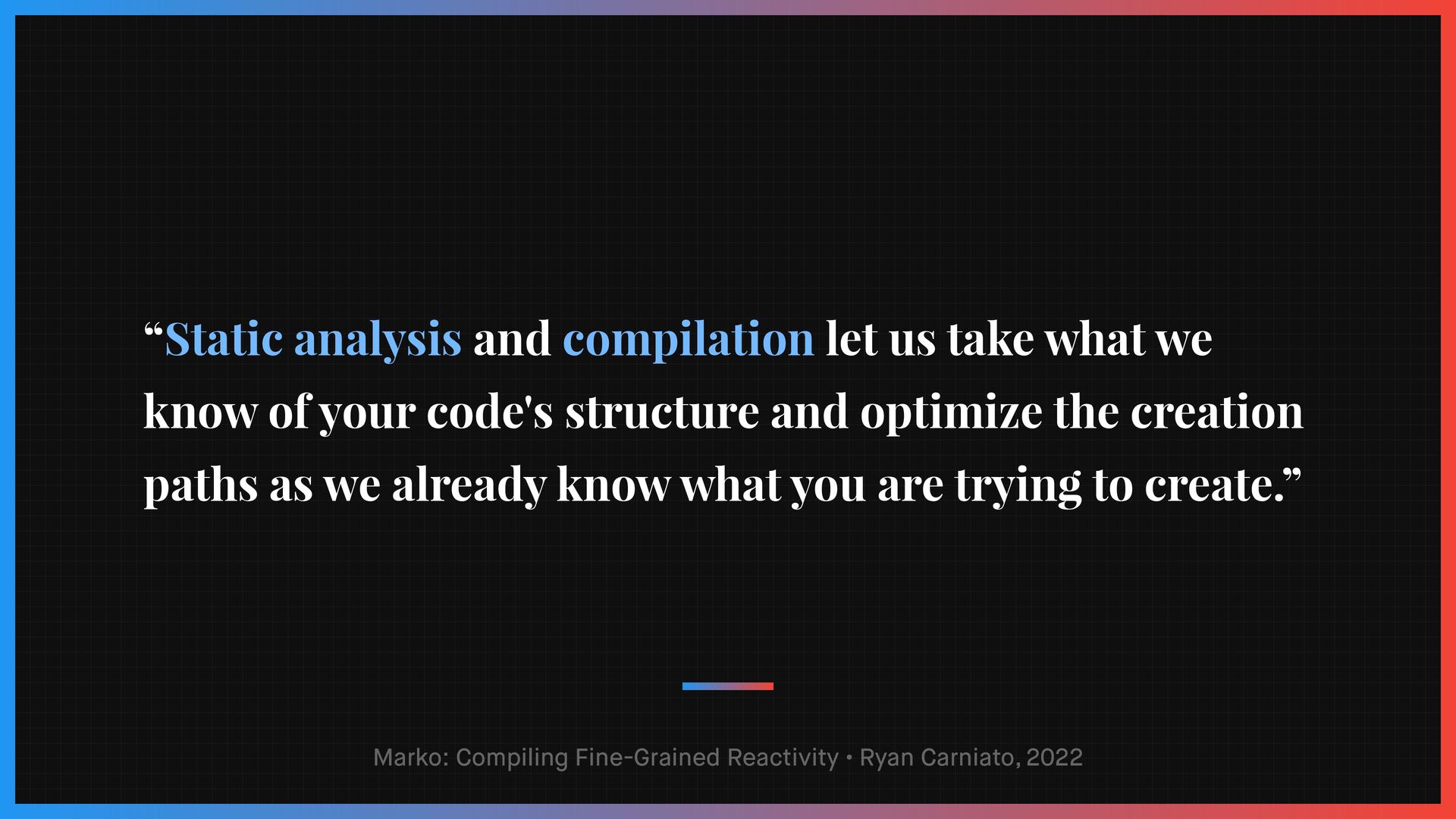 Compilers have long been seen as one of the most complex topics in computer science. Nowadays, web frameworks are evolving from runtime libraries into optimizing compilers and reshaping how we build user interfaces. Different topics in front-end development—e.g., reactive programming—are now experiencing this era fueled by static-analysis-driven insights.