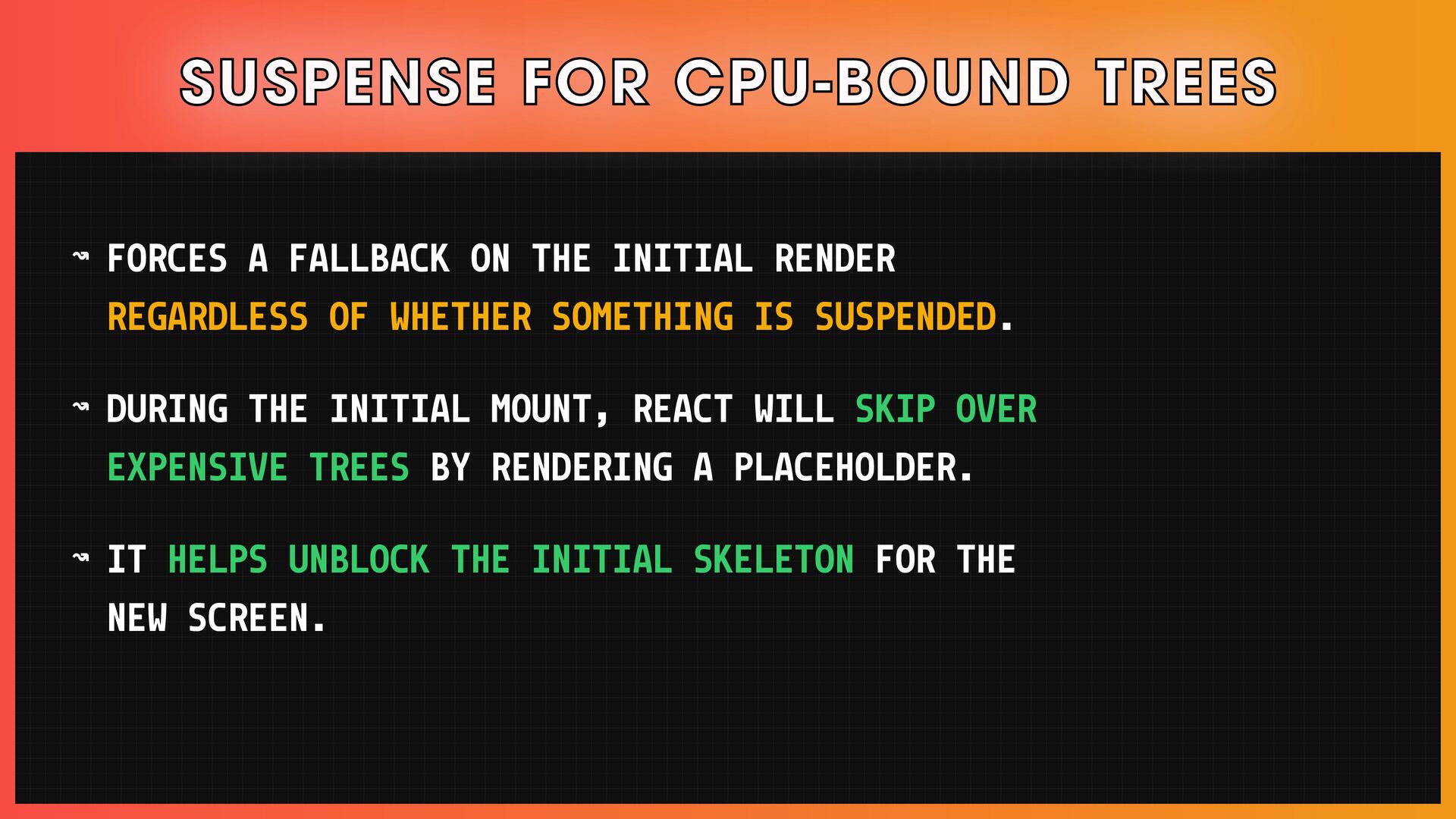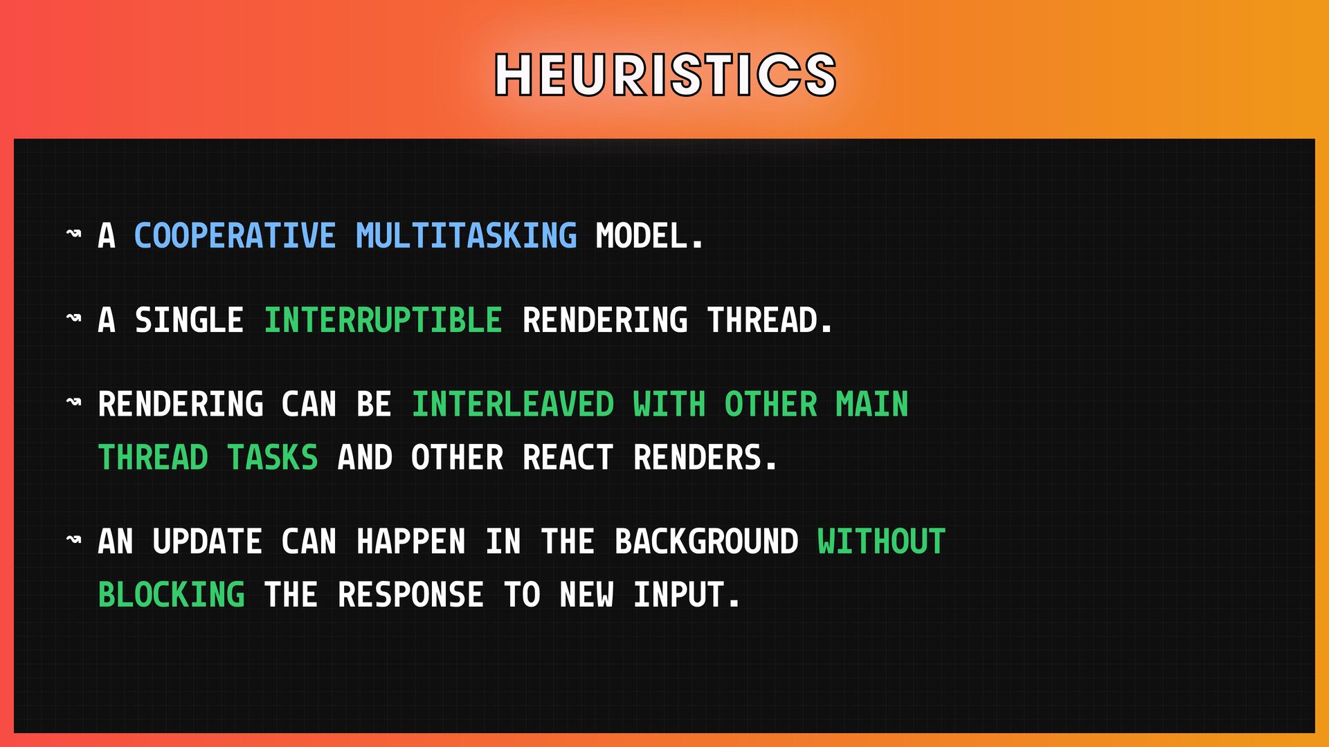 → Scheduling, reconciliation, React Fiber, and concurrent React features.