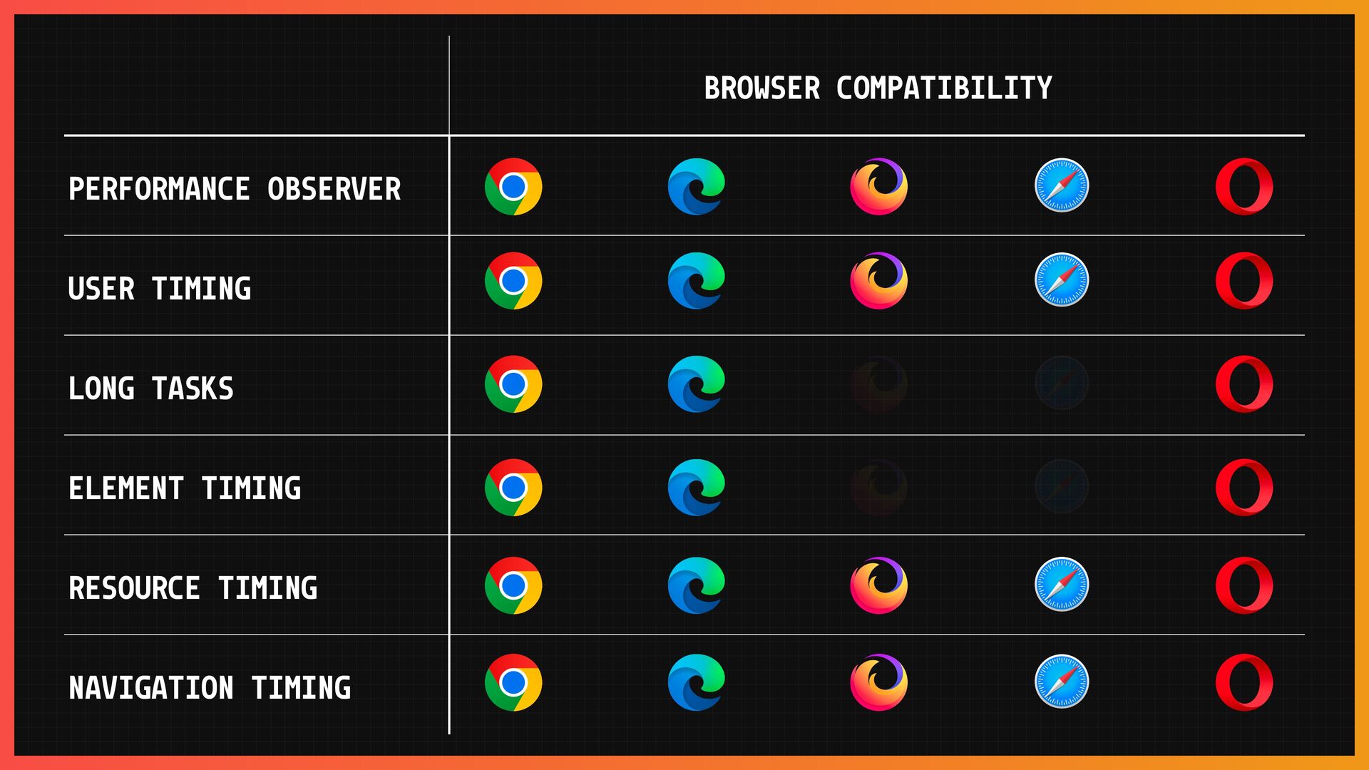 → A wide range of native, performance-related, browser APIs.