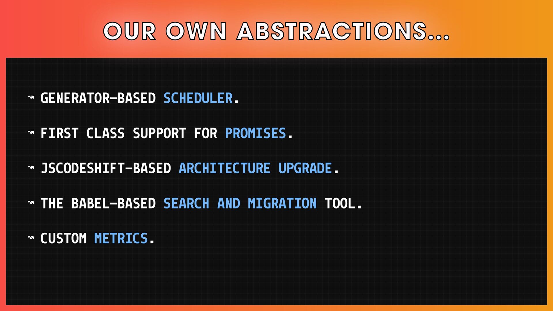 → Apply modern techniques to legacy codebases, via code generation, polyfilling, and others.