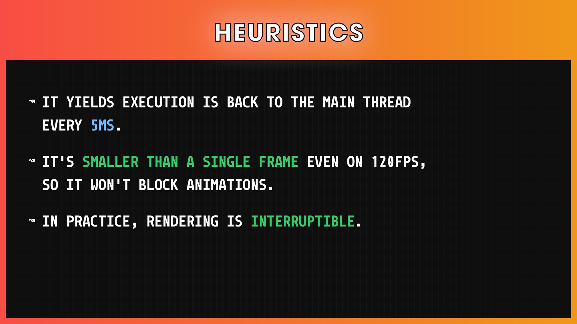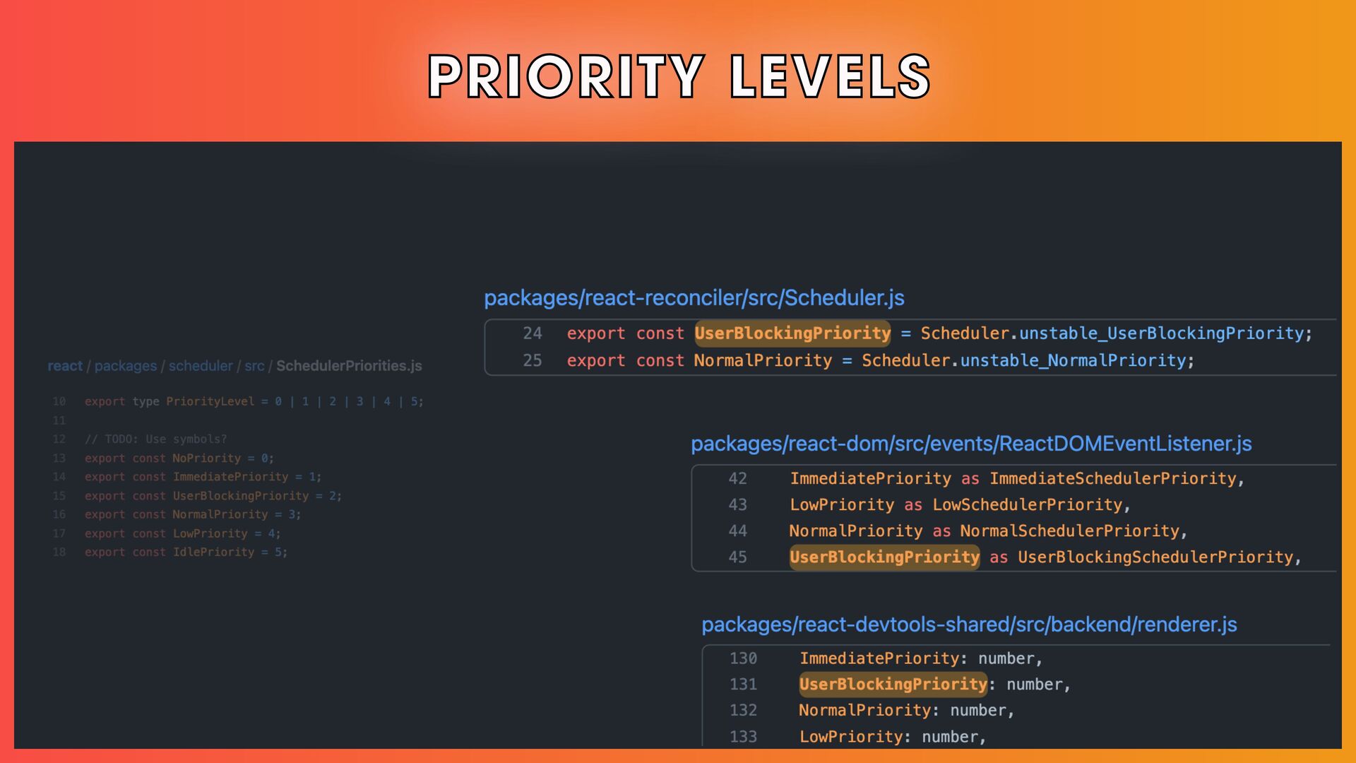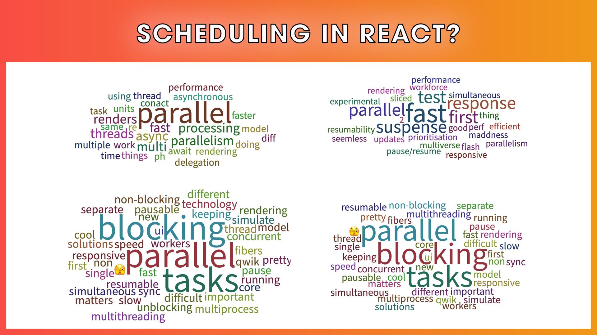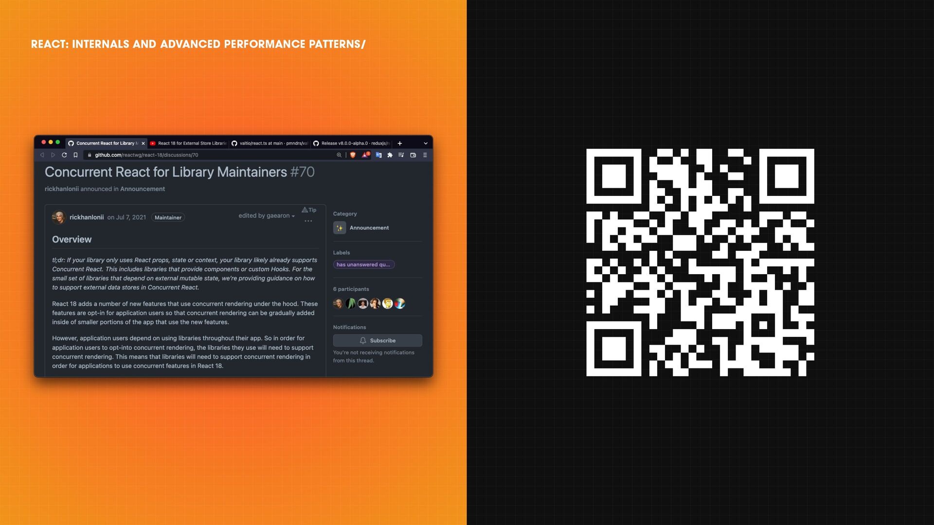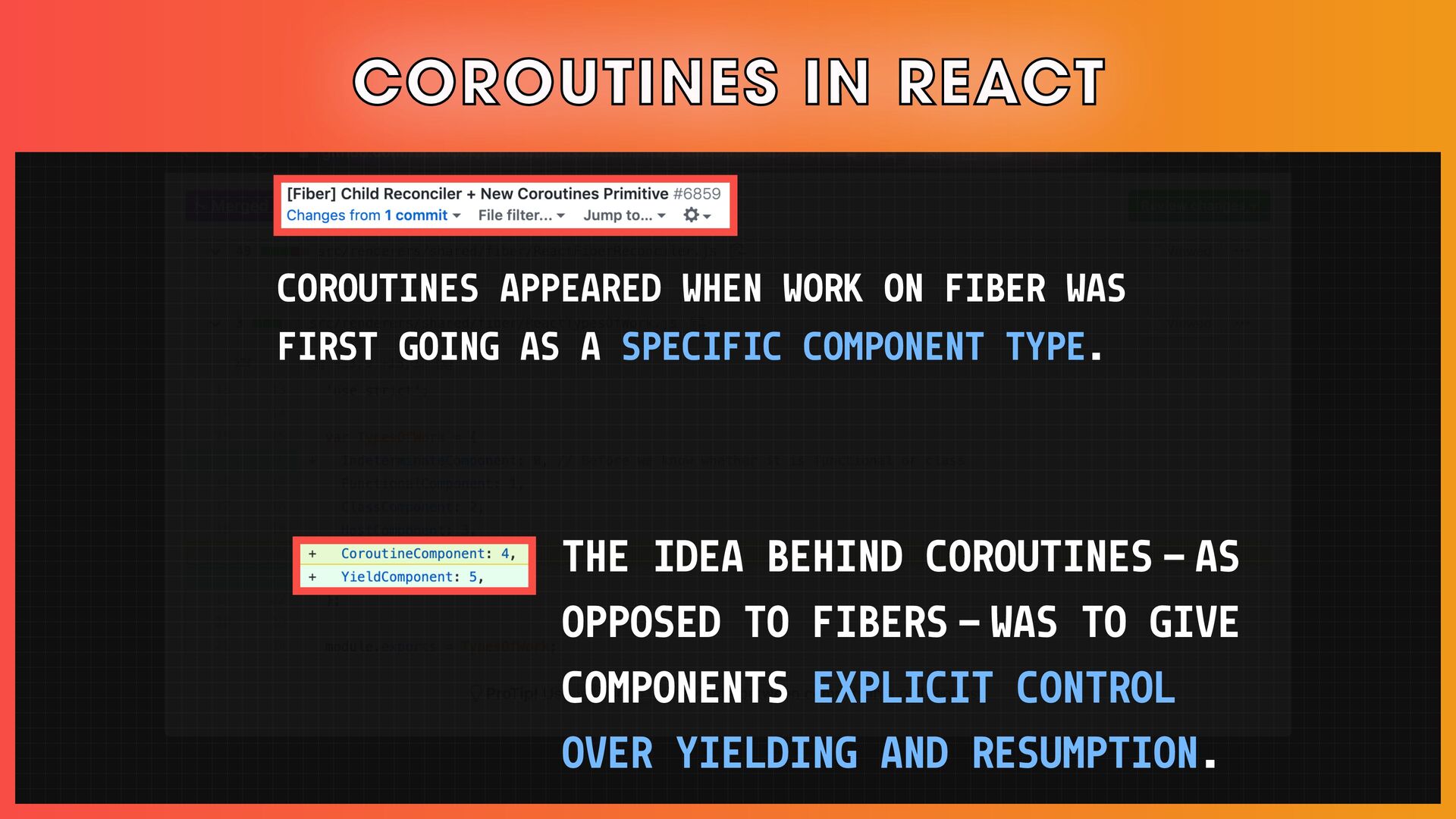 โ Scheduling, reconciliation, React Fiber, and concurrent React features.