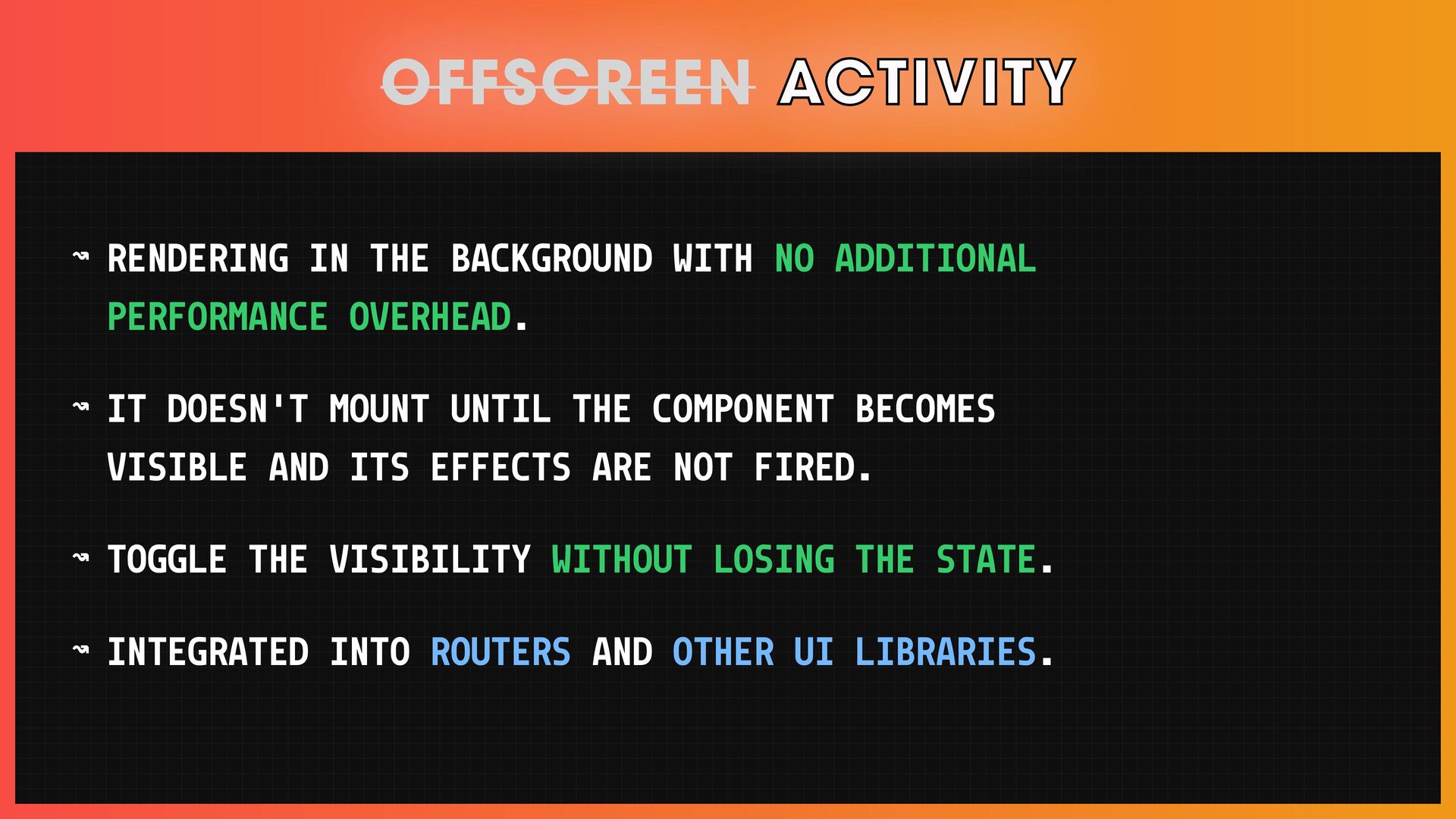 โ Different rendering patterns, like islands, streaming SSR, and React Server Components.