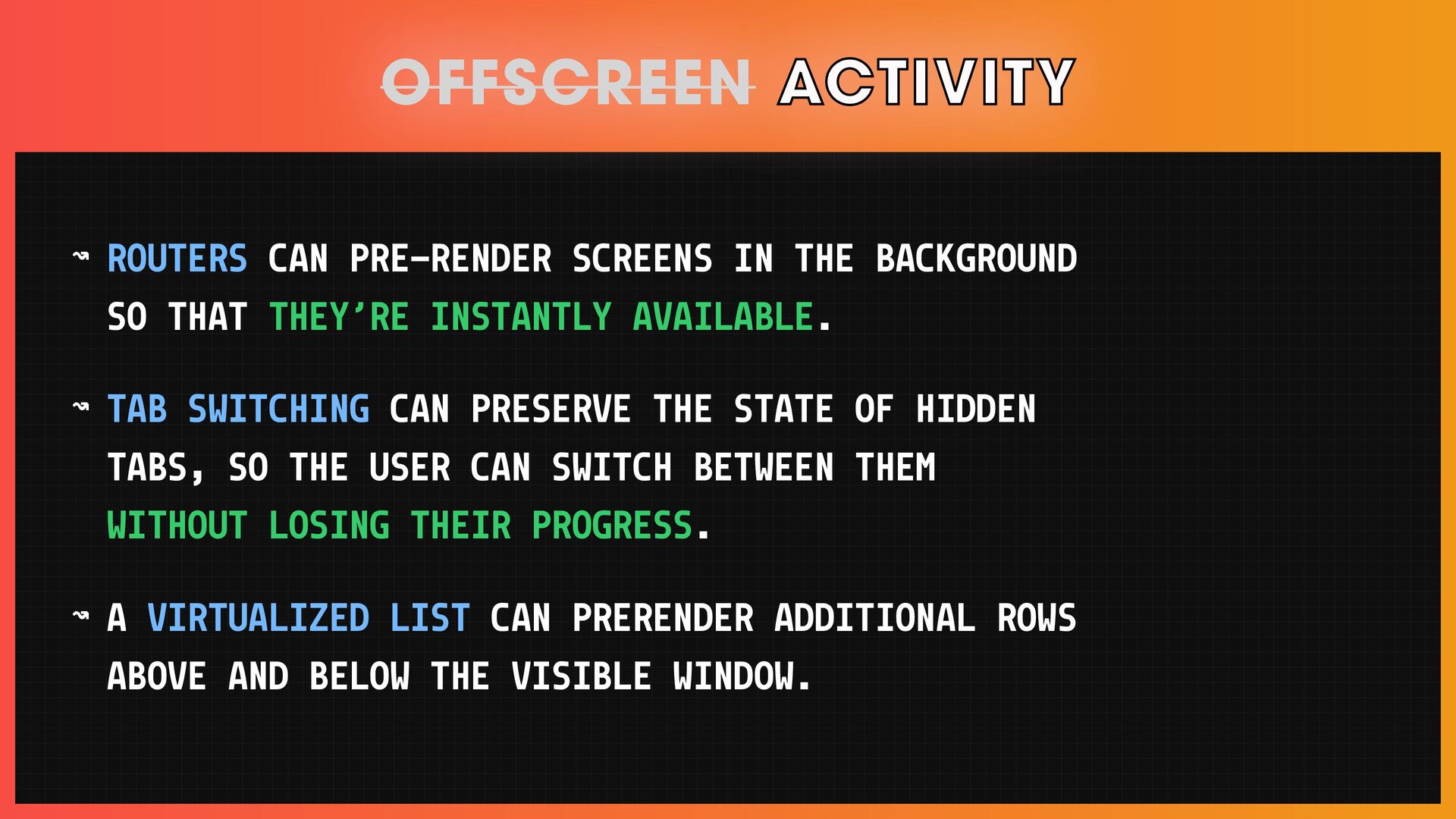 Writing fluid user interfaces becomes increasingly challenging as the application complexity increases. Additionally, in a world with a wide variety of network connections, any user can have a slow experience, and apps that delight users on fast connections can be barely usable on slow ones.