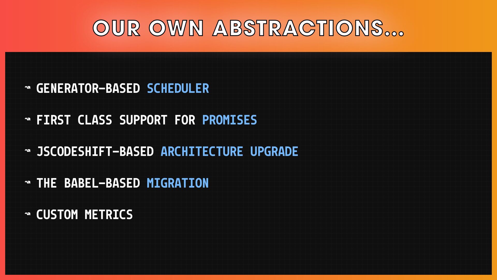 โ Apply modern techniques to legacy codebases, via code generation, polyfilling, and others.