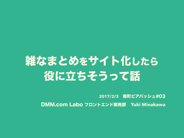 ࡶͳ·ͱΊΛαΠτԽͨ͠Β ʹཱͪͦ͏ͬͯ 2017/2/3ɹೆொϏΞόογϡ %..DPN-BCPϑϩϯτΤϯυ։ൃ෦ɹYuki Minakawa