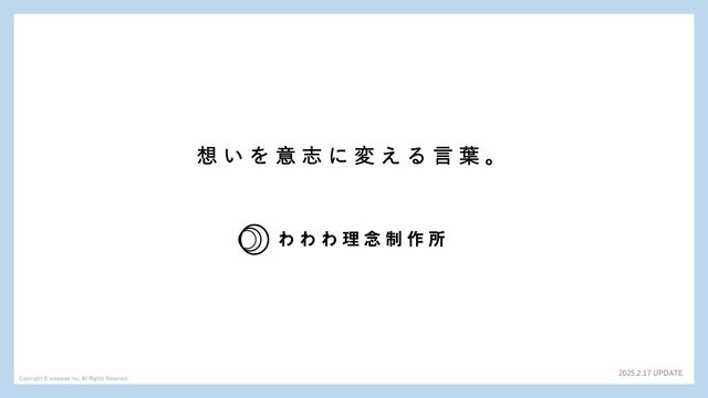 運営元の(株)わわわは、企業理念や採用コンセプトの制作などを手がけるコピーライティングカンパニーです。 https://www.wawawa.jp/
