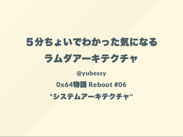 5分ちょいでわかった気になる ラムダアー キテクチャ @yubessy 0x64 物語 Reboot #06 " システムアー