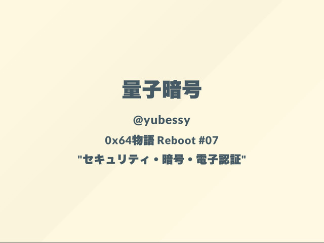量子暗号 @yubessy 0x64 物語 Reboot #07 " セキュリティ・ 暗号・ 電子認証"