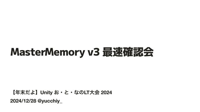 ʲͩΑʳUnity ͓ɾͱɾͳͷLTେձ 2024 2024/12/28 @yucchiy_ MasterMemory v3 最速確認会