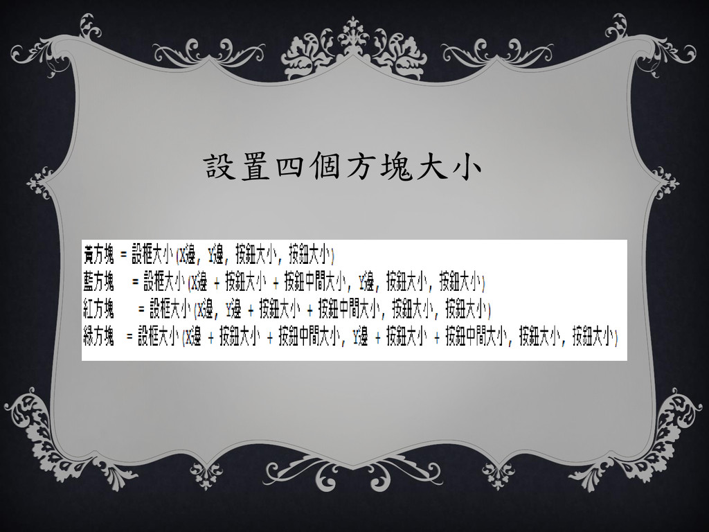 按鈕動畫是要做出黃,藍, 紅,綠四個方塊(包含顏色,以 及他們對應的音樂等等)