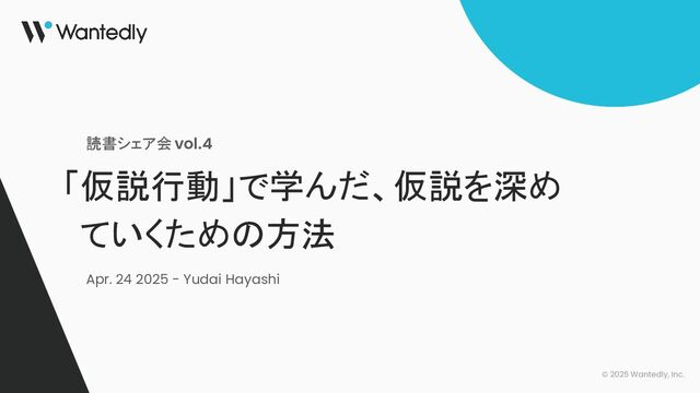 © 2025 Wantedly, Inc. 「仮説行動」で学んだ、仮説を深め ていくための方法 読書シェア会 vol.4 Apr. 24