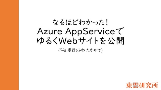 なるほどわかった! Azure AppServiceで ゆるくWebサイトを公開 不破 崇行(ふわ たかゆき)