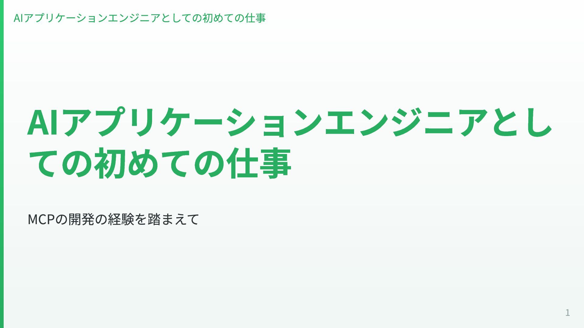 AIアプリケーションエンジニアとし ての初めての仕事 MCPの開発の経験を踏まえて AIアプリケーションエンジニアとしての初めての仕事 1
