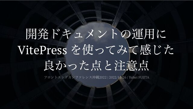 ディレクトリ構成を作成 5. ローカルで起動 yarn init yarn add --dev vitepress vue ` ` "scripts": { "docs:dev": "vitepress dev docs", "docs:build": "vitepress build docs", "docs:serve": "vitepress serve docs" }, { "devDependencies": { "vitepress": "^1.0.0-alpha.4", "vue": "^3.2.37" } } . ├─ docs │ ├─ .vitepress │ │ └─ config.js │ └─ index.md └─ package.json yarn dev
