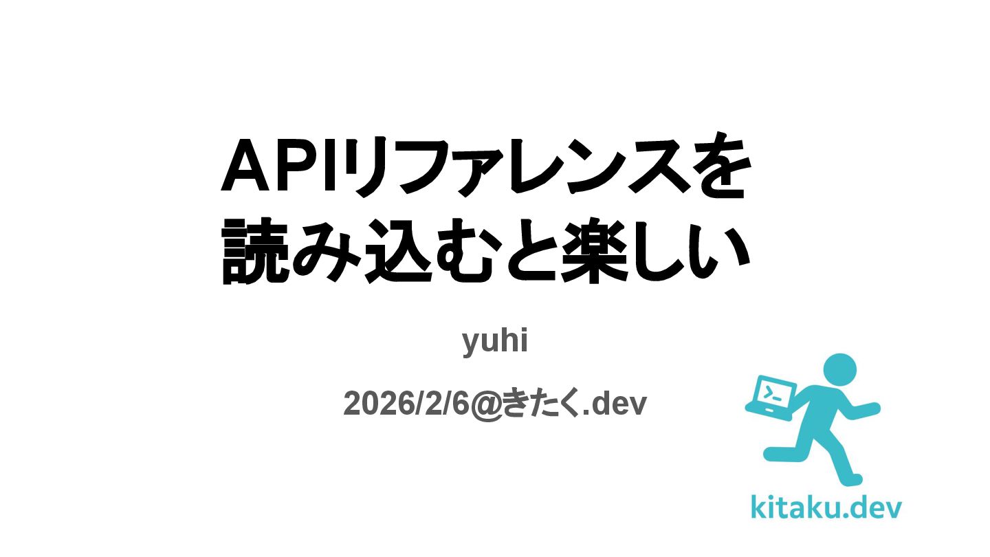 APIリファレンスを 読み込むと楽しい yuhi 2026/2/6@きたく.dev