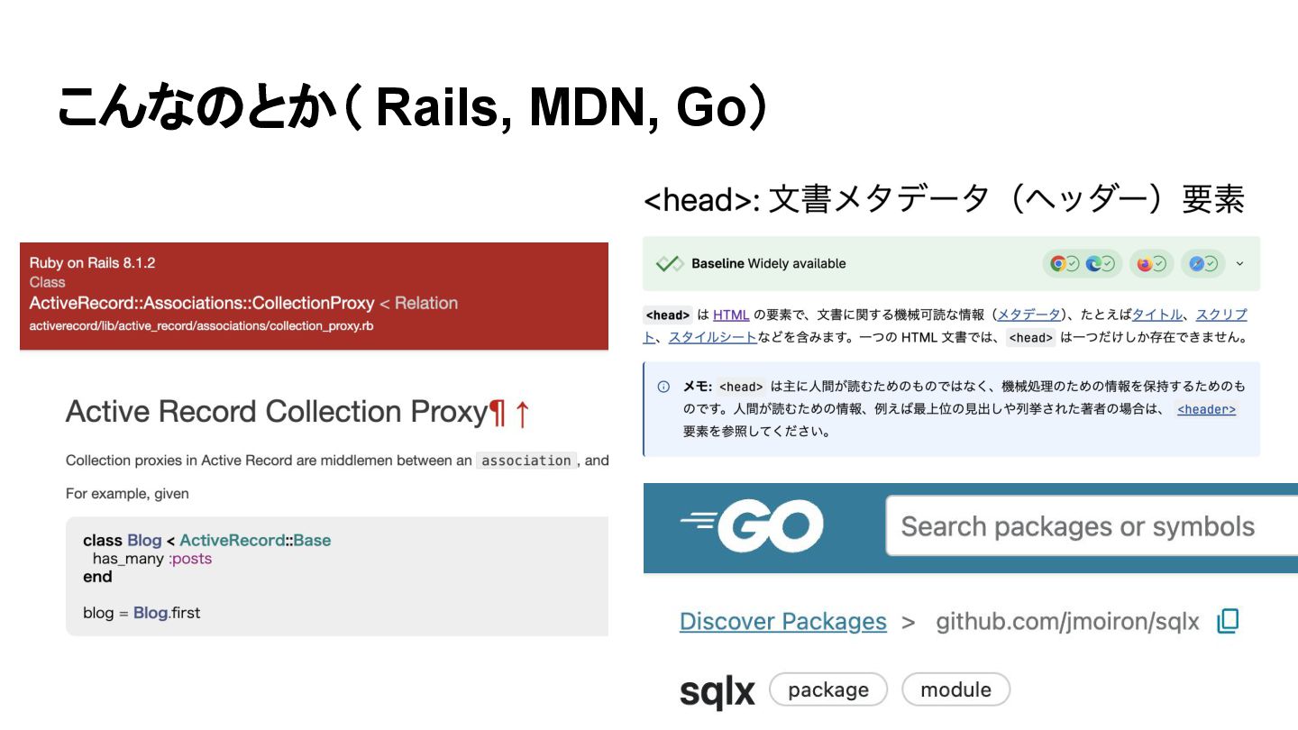 こんなのとか( Rails, MDN, Go)