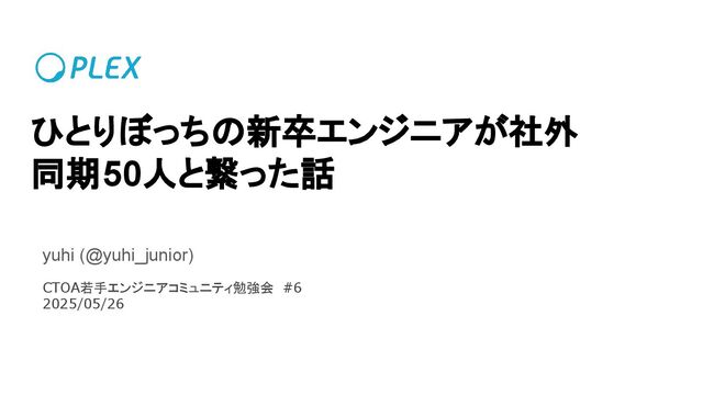 ひとりぼっちの新卒エンジニアが社外 同期50人と繋った話 yuhi (@yuhi_junior) CTOA若手エンジニアコミュニティ勉強会 #6 2025/05/26