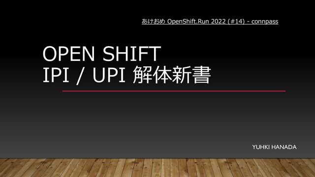 VERSION: v1 RESOURCE: <object> Platform is the configuration for the specific platform upon which to perform the installation. FIELDS: aws <object> AWS is the configuration used when installing on AWS. azure <object> Azure is the configuration used when installing on Azure. baremetal <object> BareMetal is the configuration used when installing on bare metal. gcp <object> GCP is the configuration used when installing on Google Cloud Platform. ibmcloud <object> IBMCloud is the configuration used when installing on IBM Cloud. kubevirt <object> Kubevirt is the configuration used when installing on kubevirt. libvirt <object> Libvirt is the configuration used when installing on libvirt. none <object> None is the empty configuration used when installing on an unsupported platform. openstack <object> OpenStack is the configuration used when installing on OpenStack. ovirt <object> Ovirt is the configuration used when installing on oVirt. vsphere <object> VSphere is the configuration used when installing on vSphere. $ apiVersion: v1 baseDomain: mydomain.work compute: - architecture: amd64 hyperthreading: Enabled name: worker platform: {} replicas: 2 controlPlane: < snip ! > networkType: OpenShiftSDN serviceNetwork: - 172.30.0.0/16 platform: aws: region: ap-northeast-1 publish: External pullSecret: ******************* install-config.yaml ・platform.aws は、OpenShift Installer が AWS API を 使ってインストールする事を意味します。(integrated with AWS) ・platform.none は、“any platform (or platform agnostic) ” インストールを指します。この場合、 OpenShift をインストールする Node は事前に作成してお く必要があります。 openshift-install コマンドでも explain が使える