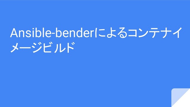 Ansible-benderとは • Playbookでコンテナイメージが作成できる • 内部では、PodmanとBuildahを使っている • イメージのpushもサブコマンドで実行可能 https://github.com/ansible-community/ansible-bender
