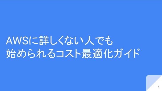 AWSに詳しくない人でも 始められるコスト最適化ガイド 1