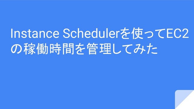 ありがとうございました より詳しい内容は以下のブログで ↓ Instance Schedulerを使ってEC2 の稼働時間を管理してみた