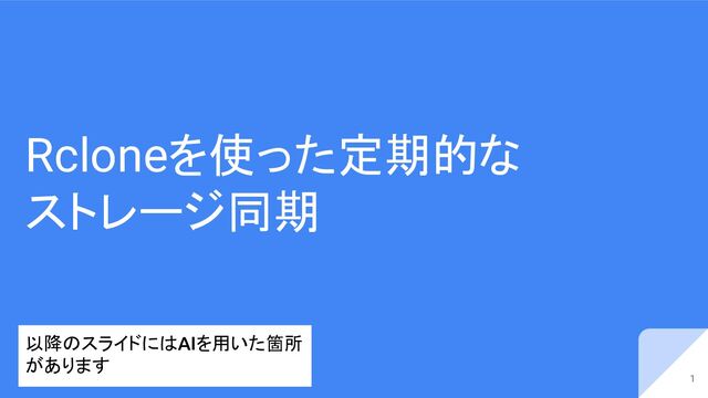 Rcloneを使った定期的な ストレージ同期 1 以降のスライドにはAIを用いた箇所 があります