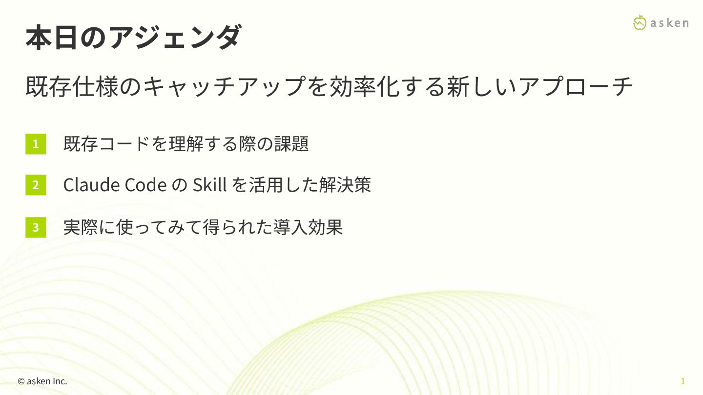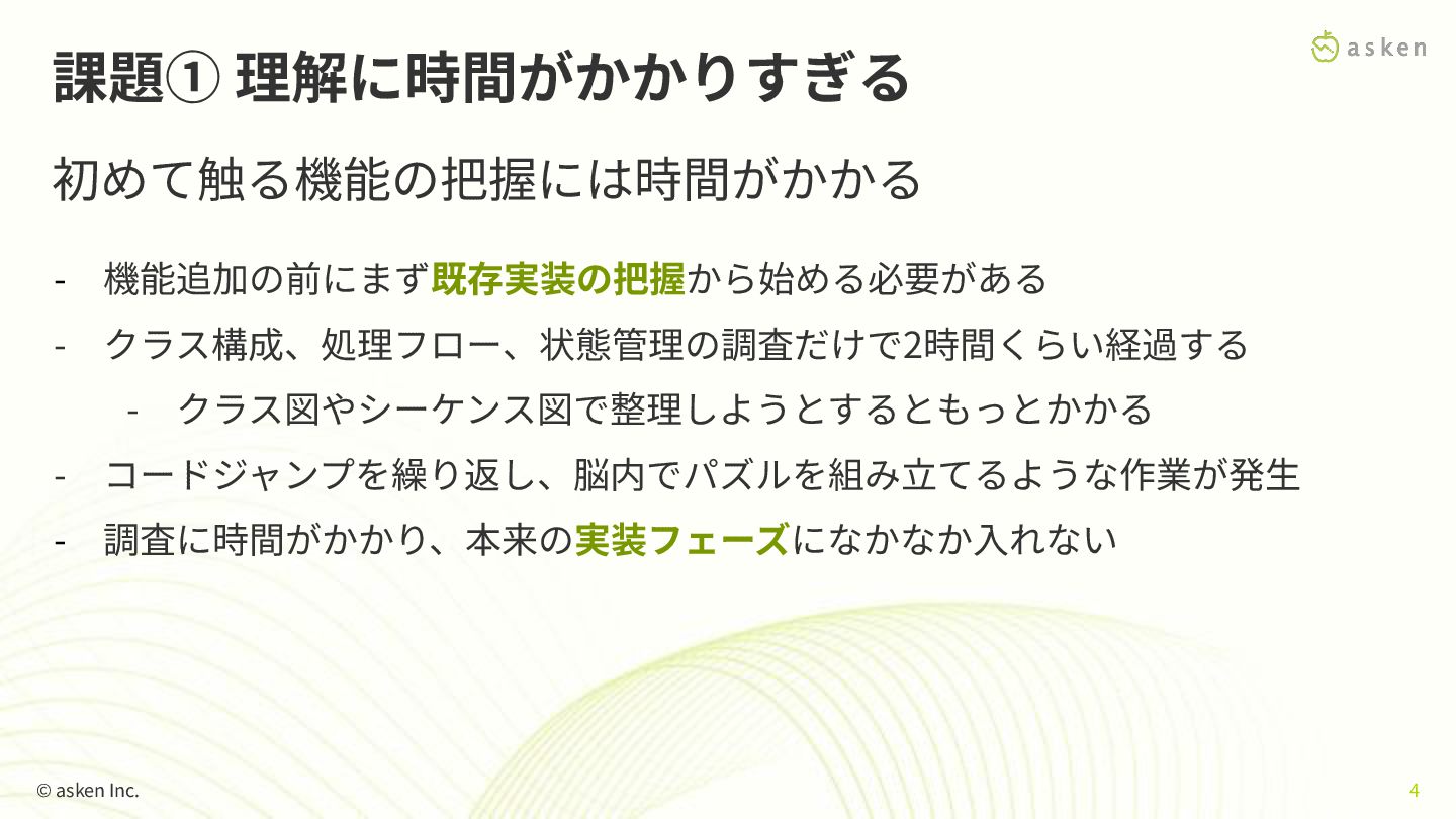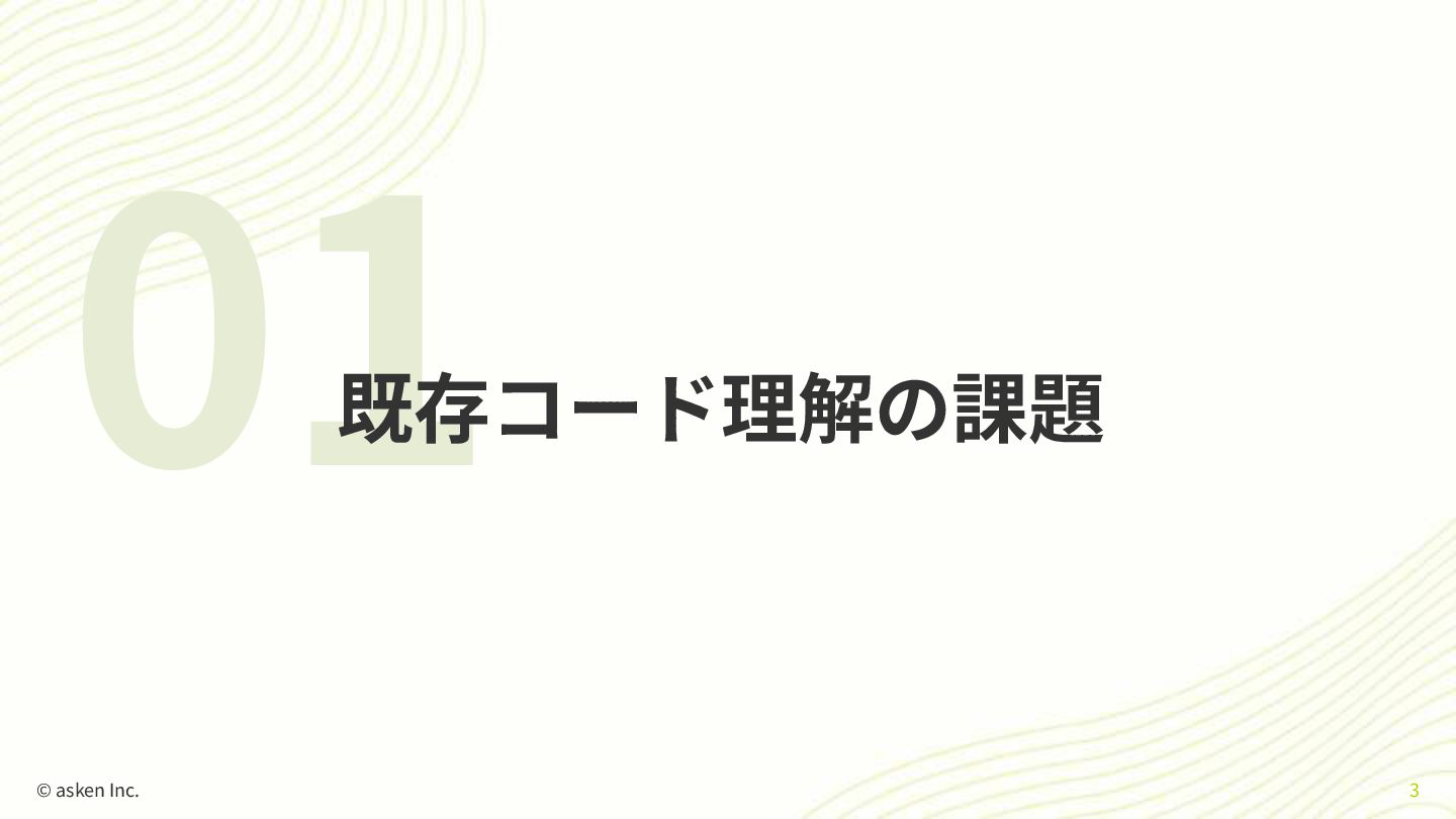 01 既存コード理解の課題 © asken Inc. 3
