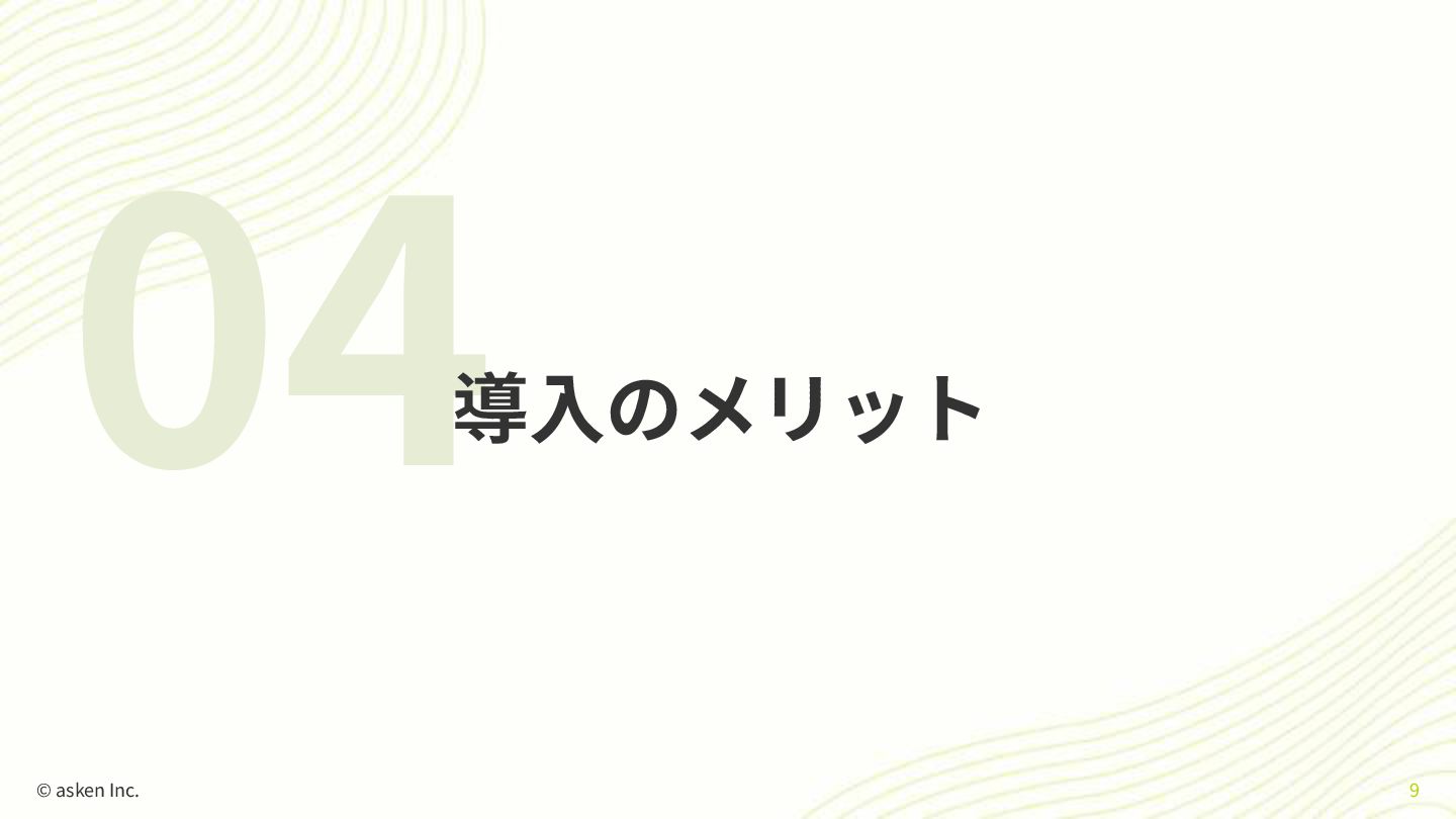 04 導⼊のメリット © asken Inc. 9