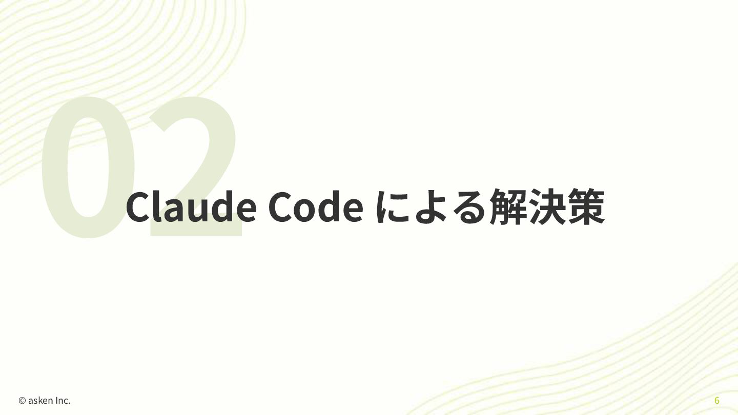 02 Claude Code による解決策 © asken Inc. 6