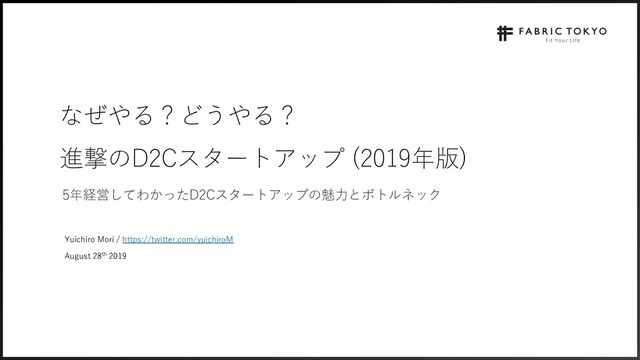 本スライドは、FABRIC TOKYOの代表の森が社内向けにD2C(DNVB)ブランドの現況や勘どころをまとめた資料を、一部加筆・修正した上で2019年8月28日に社外にも公開したものでした。