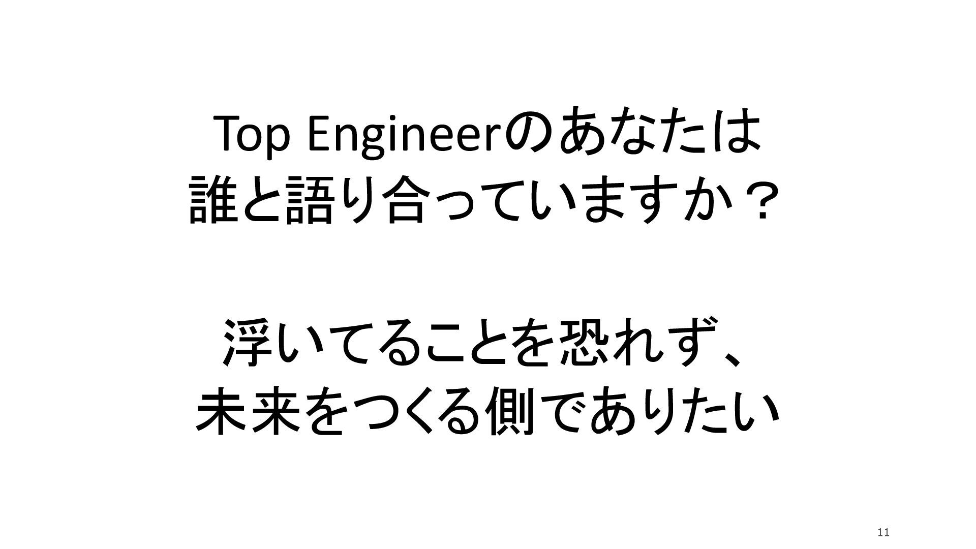 11 Top Engineerのあなたは 誰と語り合っていますか? 浮いてることを恐れず、 未来をつくる側でありたい