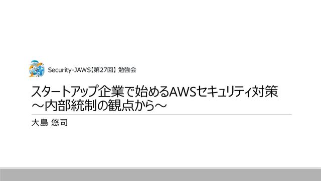 「クラウドセキュリティエンジニアブログ」 Security-JAWS【第27回】で「スタートアップ企業で始めるAWSセキュリティ対策 ~内部統制の観点から~」というタイトルで登壇しました https://devblog.nuligen.com/entry/20221205/1670215672