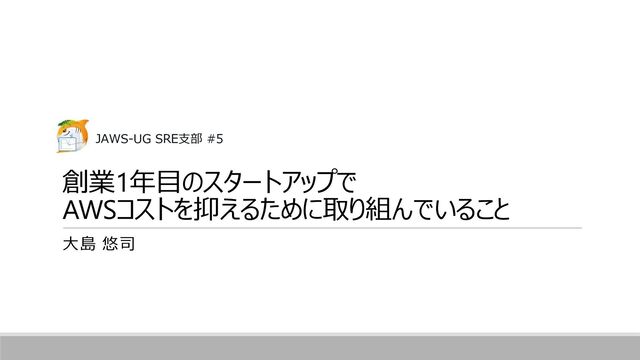 創業1年目のスタートアップで AWSコストを抑えるために取り組んでいること 大島 悠司 JAWS-UG SRE支部 #5